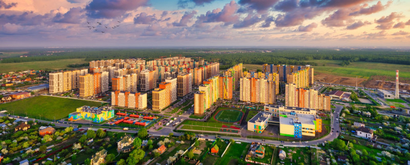 ЖК Пригород Лесное — это полноценный микрорайон, обеспеченный социальными объектами, с развитой дорожно-транспортной сетью и собственными инженерными коммуникациями. В состав жилого комплекса входят 144 монолитно-кирпичных здания высотой от 9 до 17 этажей.