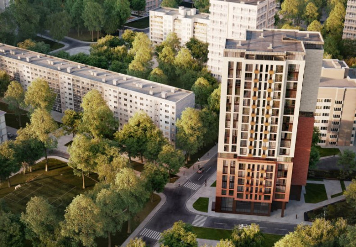 Состоит из 3 домов переменной этажности от 13 до 22 этажей.