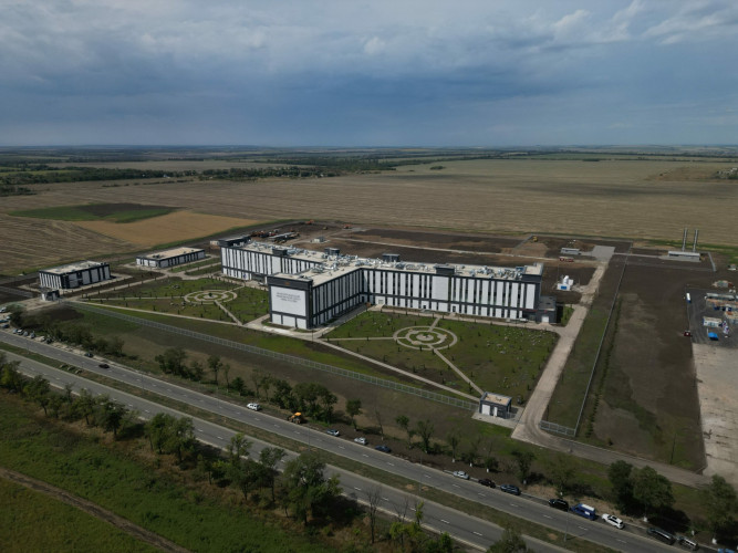 Новый медкомплекс на 200 мест – это капитальное одноэтажное здание с системой кондиционирования, двумя операционными, реанимационным отделением, палатами для пациентов, кабинетами врачей и полным комплектом оборудования — в нем более двухсот позиций (компьютерный томограф, аппараты для рентгена, УЗИ, все для колоноскопии и эндоскопии, портативные аппараты ИВЛ, ПЦР-лаборатория и многое другое).